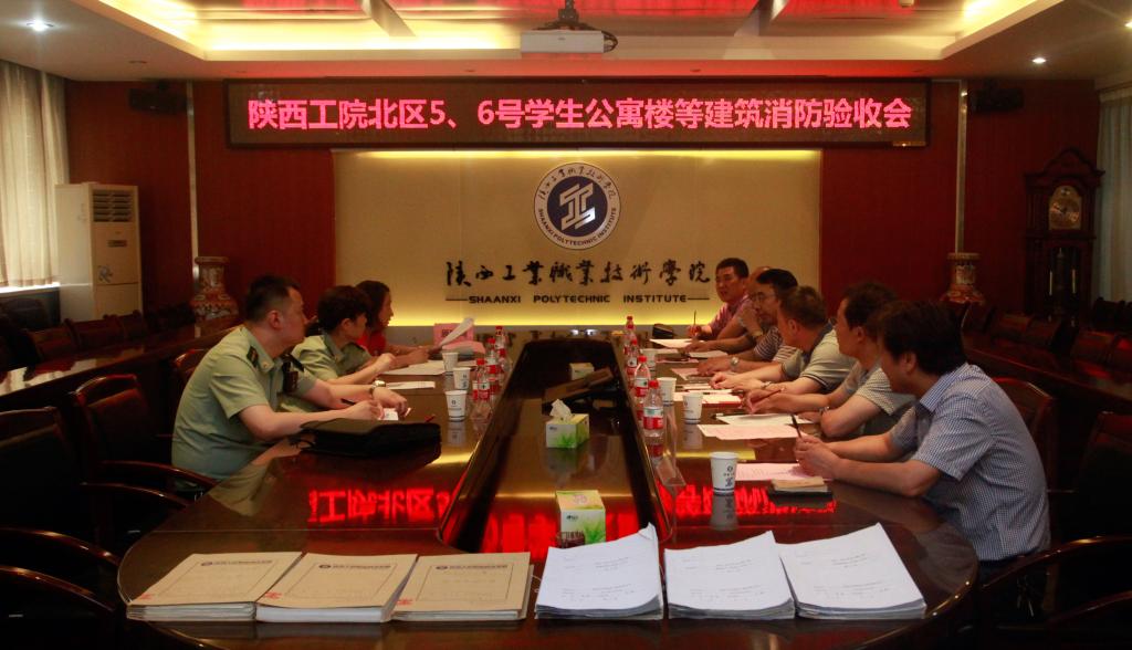 咸阳市公安消防支队工程验收科工程师王琪、王奔和监督管理科工程师杨文娟等技术专家和学院纪委书记康强、基建处、保卫处等部门负责人在崇文楼第一会议室召开了明伦园5-6#学生公寓楼消防验收工作会议,听取了基建处、保卫处负责同志的验收准备工作汇报、查看了相关资料。