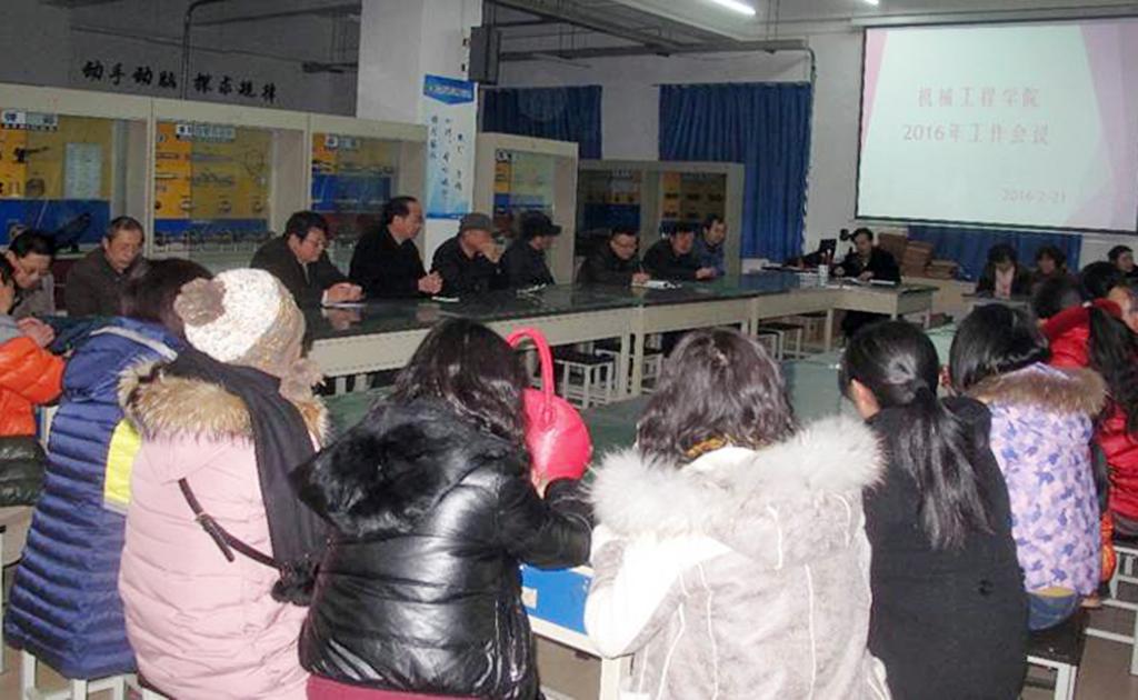 机械工程学院:21日下午,机械学院在行知楼E-201召开2016年工作会议,机械学院院长田锋社主持会议,该学院全体教师参加。
