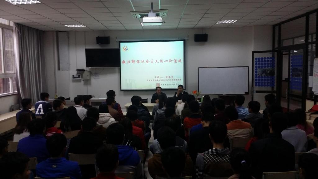 傅依全教授从社会主义核心价值观的历史渊源和形成讲起,分析了社会主义核心价值观的内涵。他指出,社会主义核心价值观是中华文化的历史传承,是近代革命家在实践中浓缩的结晶,正在逐步有效的深入践行。整场讲座深入浅出,引证了中华五千年沉积的文化形成了社会主义核心价值观,阐明了中华文化是中华民族的灵魂,并从国家、社会和个人三个层面深刻解读了社会主义核心价值观的内涵。他强调,圆我中华民族伟大复兴的中国梦,必须靠全体中国人民,特别是大学生们的共同努力才能实现。每个中华儿女都要自觉行动起来,同心共筑核心价值观,同德共圆伟大的中国梦,使中华民族真正强大起来,为尽快实现中国梦而努力奋斗!