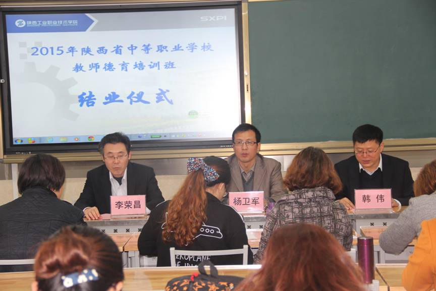 11月11日下午,2015年陕西省中等职业学校教师德育培训班结业典礼在我院崇明楼205教室举行。我院副院长杨卫军、继续教育中心主任韩伟及相关工作人员,培训班全体学员参加了结业仪式。仪式由韩伟主任主持。