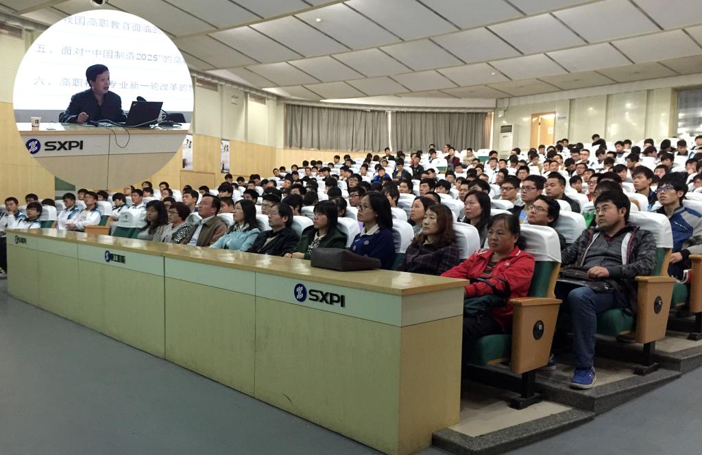 10月30日下午,国家级教学名师、机械工程学院院长田锋社教授的题为《中国制造2025与高职教育改革探析》的学术报告会在学术会堂举行,报告会由机械工程学院举办,党总支书记王金辉教授主持,该学院全体教师和相关专业学生共400余人参加了报告会。