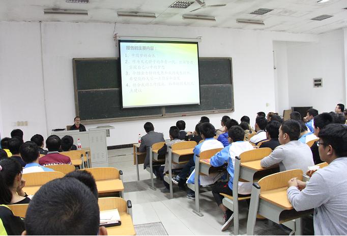 10月22日下午,由校企合作处主办、电气工程学院承办的文化大讲堂在崇文西楼301合堂教室开讲,全国人大代表,陕西法士特集团公司首席技能培训师曹晶,为电气工程学院300余名学生作了题为“我的中国梦”的报告。电气学院党总支书记万可顺主持了报告会。
