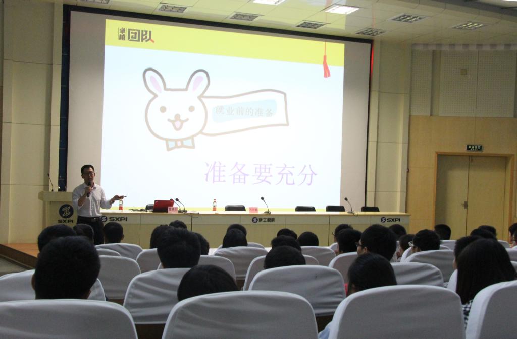 窦艳阳根据亲身经历,分别从就业前的准备、如何成功应聘、如何在企业站稳脚跟、如何提升职业技能和职业素质、如何抓住晋升和提拔的机会等方面,给现场师生上了一堂生动的就业指导课。他告诉大三毕业生,找工作时要树立信心,充分准备;进入职场后要诚实自信、从小事做起、职业规划、多做事少埋怨。创业方面他谈了三点:一是要弄清楚想做什么并准备充分;二是要有持之以恒,一往无前的精神,不能败在黎明前的黑暗;三是要心胸宽广,常怀感恩之心。最后他与现场的学生进行了互动交流,用朴实的语言回答了大家提出的问题。他希望大家在校期间多参与社团活动,增强沟通能力和专业技能,为顺利就业打好基础,并祝愿母校越办越好,培养更多的优秀毕业生,为社会做出更大贡献!
