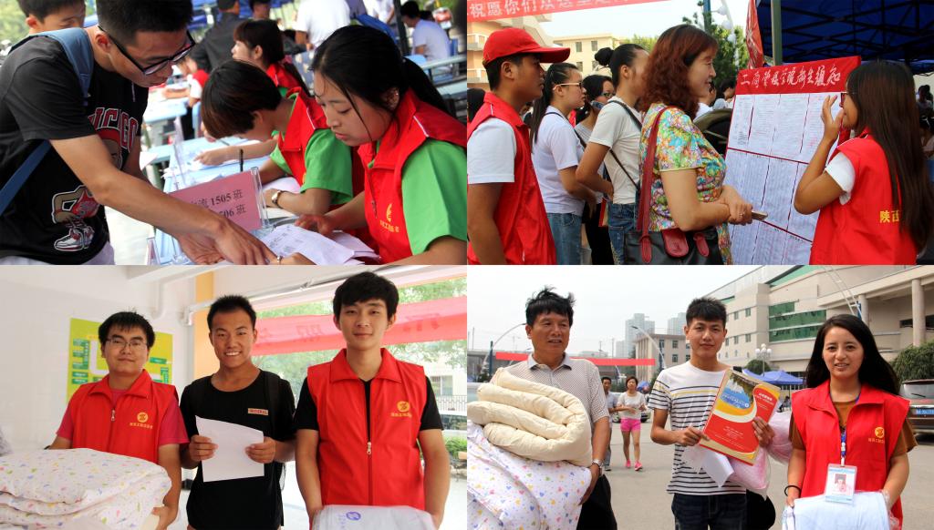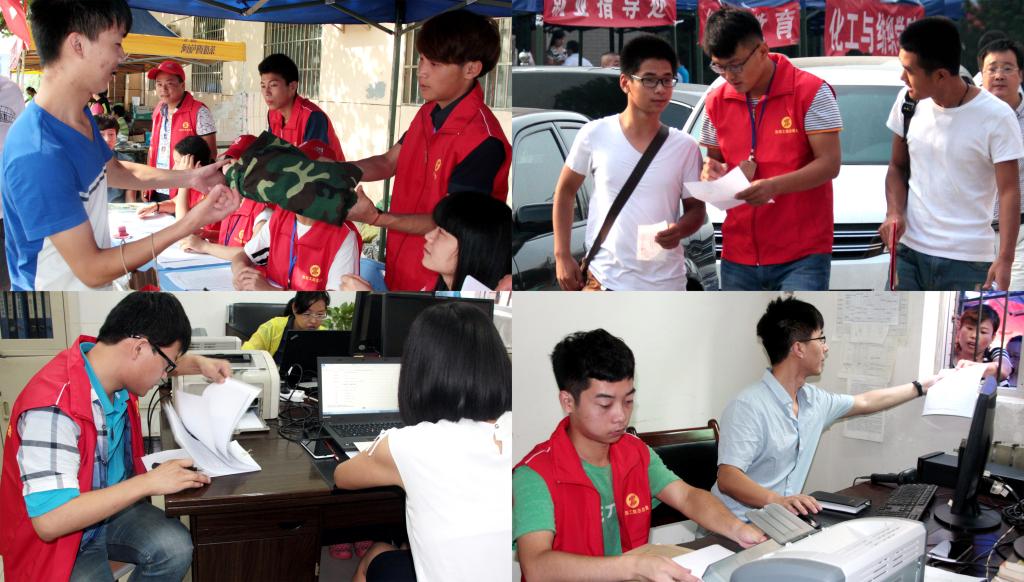 2015级迎新工作的志愿者队伍由团委、学生会、社团联合会直属的学生干部及各二级学院抽调的党团员青年组成。为了让新生和家长在报到时有头绪,从咨询到录入再到填写学生信息等都有详细的引导牌,各学院都做好精心的准备,在每个地点都派有专门的大学生志愿者负责帮助。