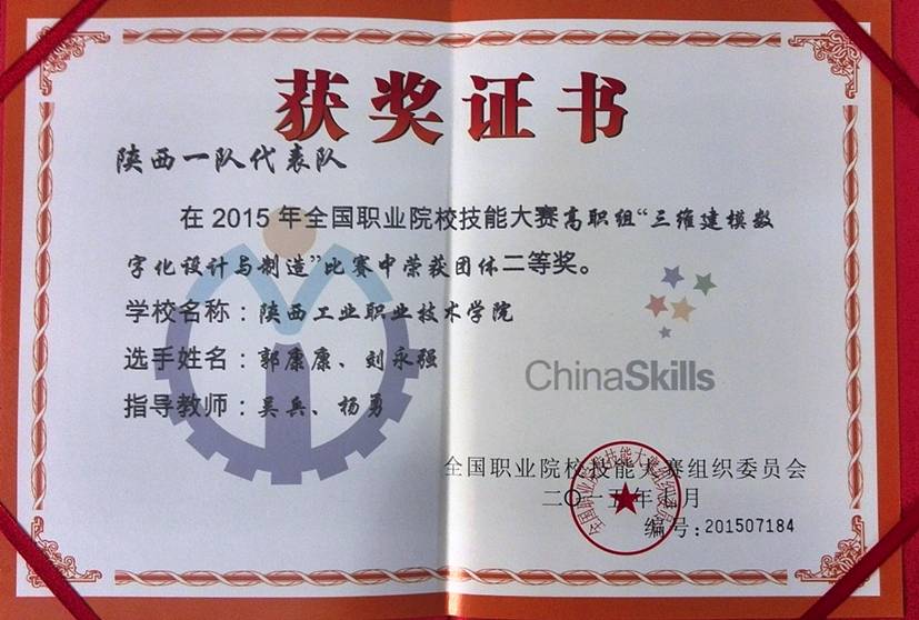 7月1至2日,全国职业院校技能大赛高职组制造大类“三维建模数字化设计与制造”赛项比赛在天津举行。由我院数控工程学院数控1201班郭康康、数控1301班刘永强两位学生组成的陕西一队荣获团体二等奖,两位选手良好的专业水平和职业素养得到现场专家裁判的好评。