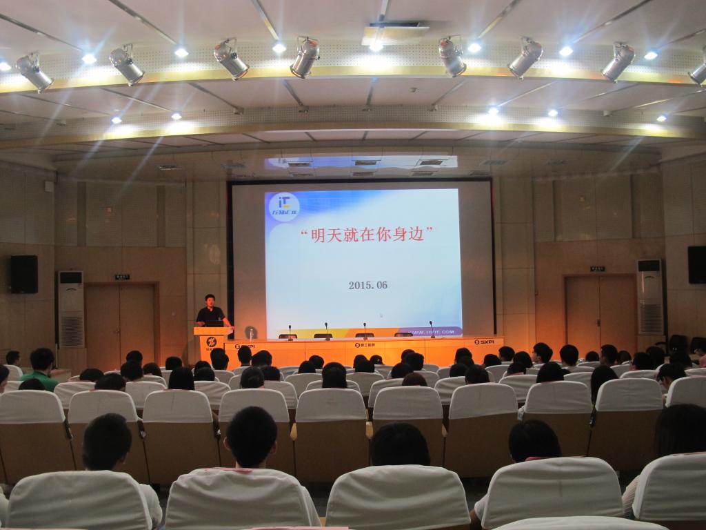 6月18日下午,由校企合作处主办,信息工程学院承办的“文化大讲堂”在学术会堂举行。北京行知汇元科技发展有限公司董事张保法应邀做“明天就在你身边”的专题讲座。校企合作处副处长郝军莅临现场,信息工程学院300余名学生聆听了讲座,会议由信息学院学工办主任曹伟主持。