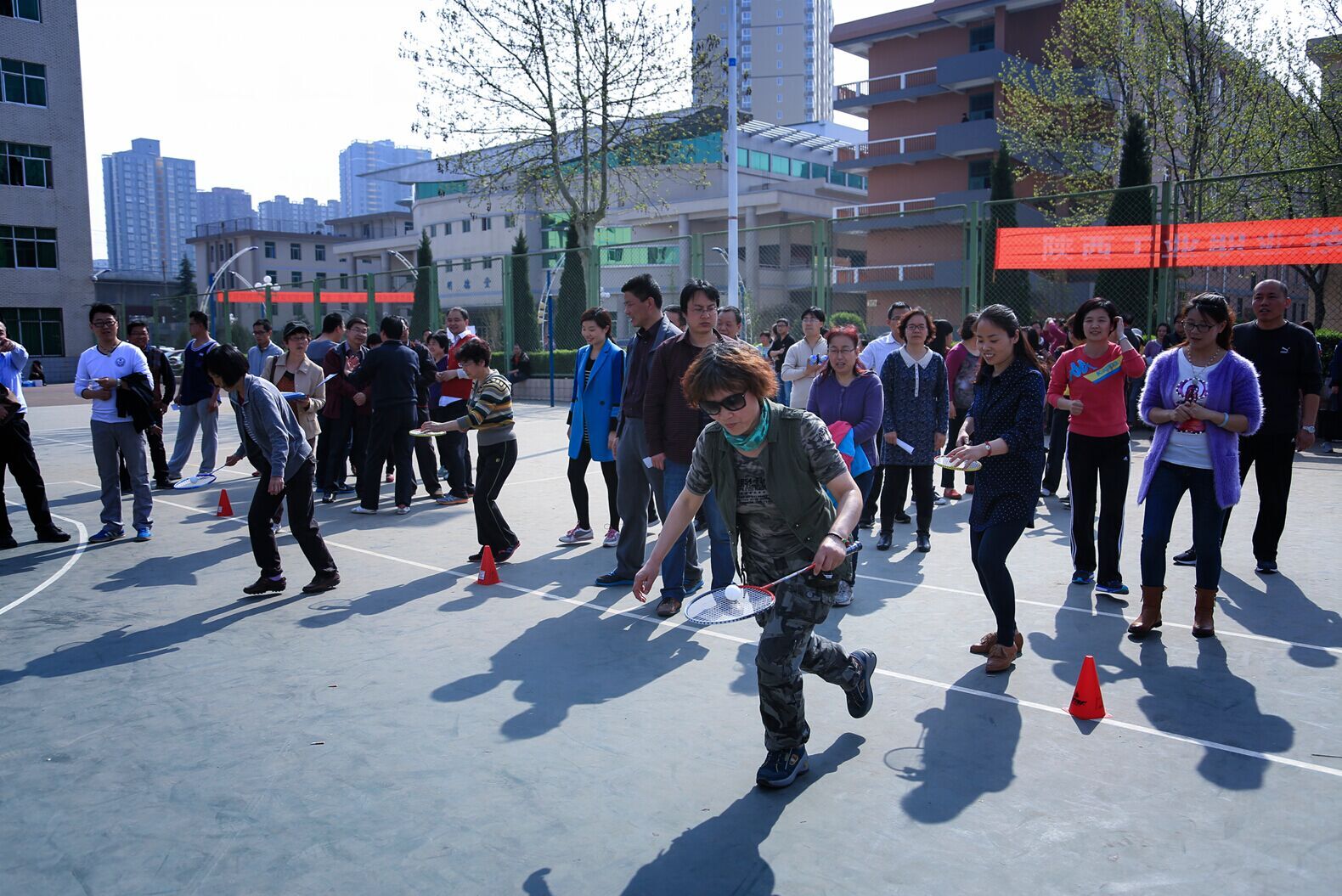 4月9日下午进行了历年参赛人数最多、比赛持续时间最长的男女投篮个人项目。刘艳申、孙小云等283名教师分别获得该项目的一、二、三等奖。10日上午进行了男女踢毽子、徒步、混合手足情五个项目的比赛,苏长江、宋群芳、魏继承、王飞龙、孙小云、孙延等82人,土木学院③队等20个代表队获得了相应组别的一、二、三等奖;10日下午进行了男女投篮、托球跑(男50岁及以上、女45岁及以上项目)、男女混合托球跑接力、同舟共济四个项目的比赛,许向东、屈桃仙等32名教职工,教务分会③队、电气学院②队等48个教职工代表队夺得了不同的名次奖项。