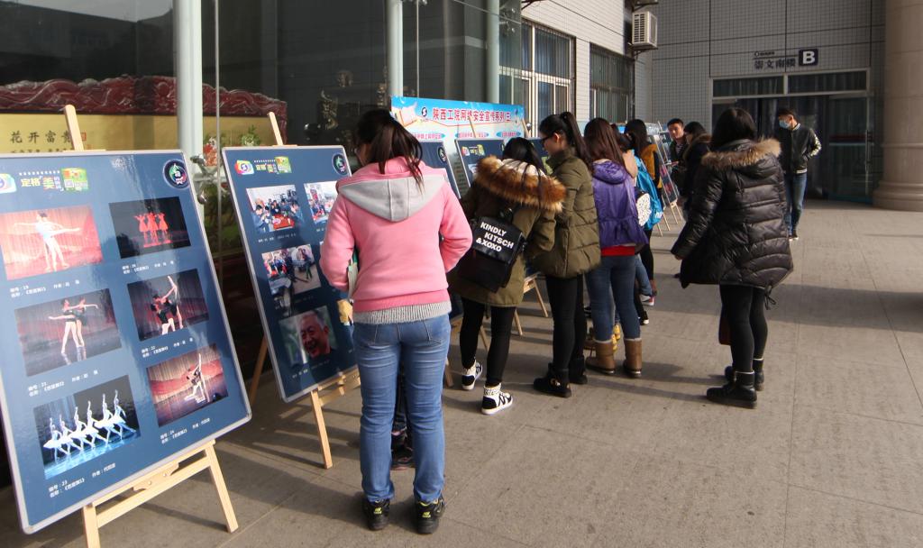 近日,由党委宣传教育部主办的“定格美的瞬间”2014陕西工院摄影作品展在崇文南楼前开始展出。本次影展以“定格美的瞬间”为主题,广大通讯员及摄影爱好者踊跃参与。展出的人物、风光、新闻三大类200余副摄影作品吸引了广大师生驻足观赏、点评、拍照,大家还纷纷为心仪的佳作投下自己的一票。