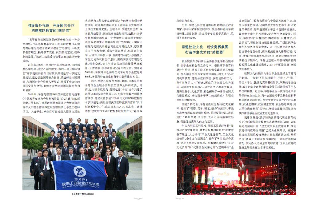 “高等教育的国际化是经济全球化的一种必然趋势,占高等教育半壁江山的高职教育也必须与国际通行的教育体系和教育方向接轨,不断更新教育理念、提高教育质量,找到新的定位,获得新的发展。”陕西工院党委书记邓志辉如此评价学院的。