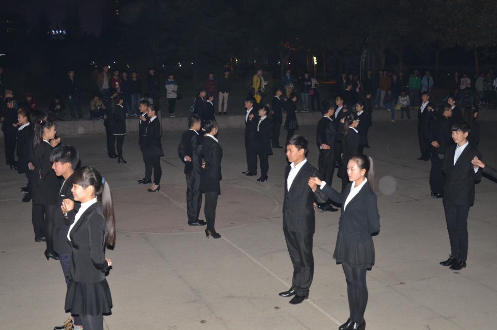 夜幕降临,舞会在大家期待的目光中拉开帷幕。一开场,集体舞“爱的华尔兹”便把大家带入了舞会的氛围,同学们身着整齐的正装,优雅的迈步,轻盈的转身,动作如行云流水般潇洒自如、典雅大方;紧接着富有节奏感和时代性的舞蹈“小苹果”给舞会带来了青春的活力;“兔子舞”则使整个舞会现场沸腾了起来;由郭晓莹老师领跳的集体舞更让舞会进入了高潮。一首首动感的舞曲,一个个优美的舞姿,使得同学们领略了舞蹈的魅力,更找到了校园大家庭里的欢乐。