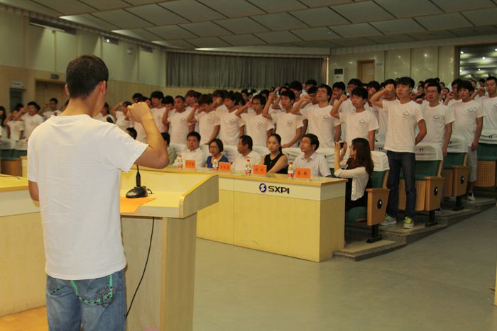 首期亿滋班班主任、数控工程学院张旭老师发言。他希望订单班同学珍惜机会、认真学习、努力做事,顺利成长为亿滋班的优秀学员。数控1201班学生马帅代表“亿滋”班全体学员发言表态,并带领“亿滋班”学生集体宣誓。