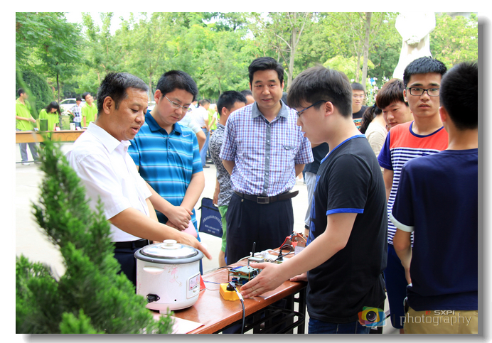 6月16日下午,我院第十二届“创意杯”电子作品展在格物楼前广场举行,副院长王津、团委书记闫军和承办本次活动的电气工程学院领导万可顺、卢庆林、殷锋社等现场观看学生作品,并与学生进行深入交流。