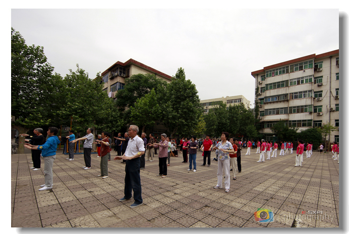 离退休职工在同乐园广场运动健身