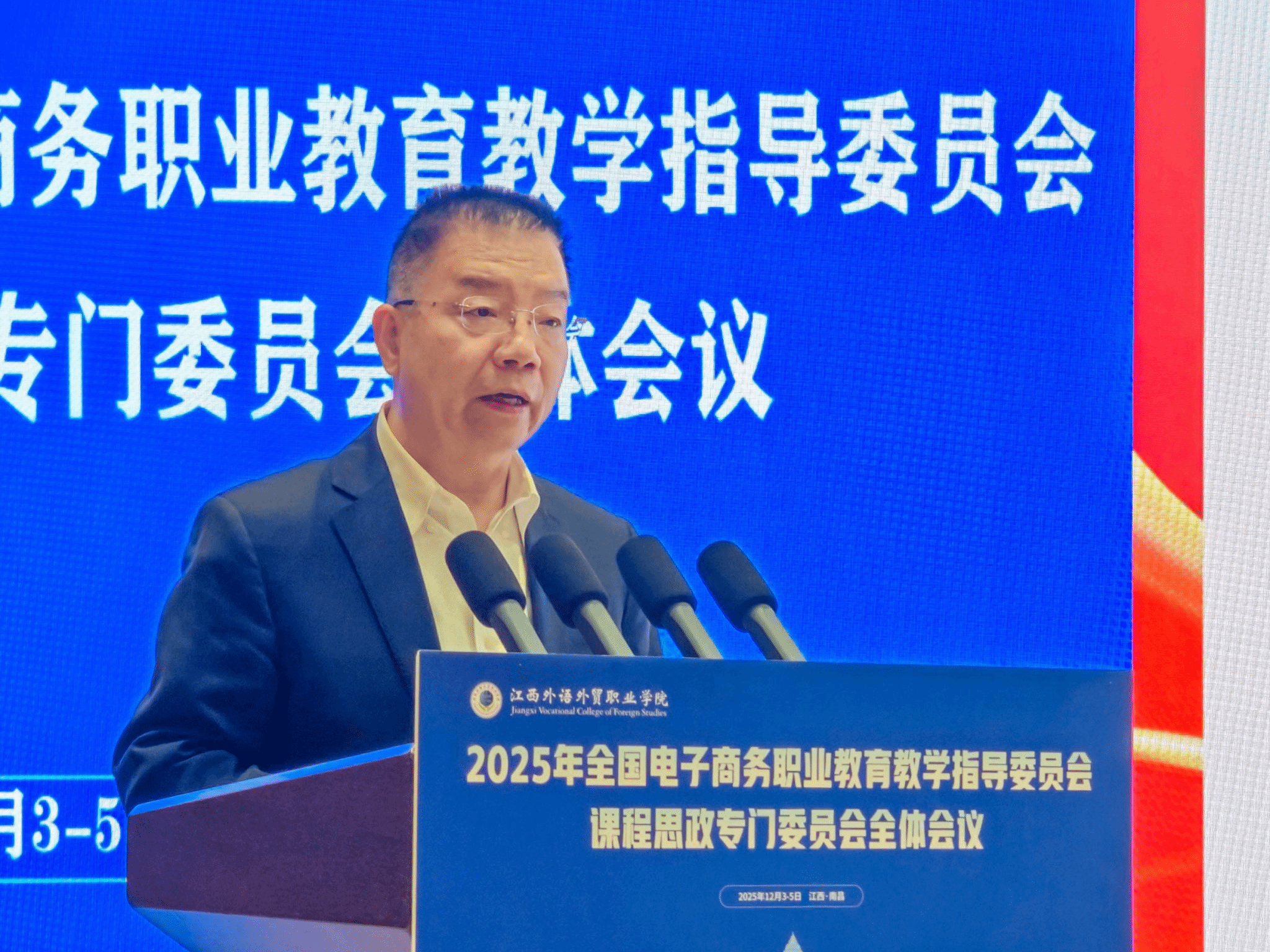 12月3日—4日,全国电商行指委课程思政专委会2025年工作会议在江西顺利召开。本次会议以“深入贯彻落实教育强国建设规划纲要,扎实推进电商类课程思政建设”为主题,旨在进一步推进高职院校电子商务类专业课程思政建设,总结专委会两年来的工作成效。我校党委书记惠朝阳作为专委会主任委员出席会议并作专题报告,专委会秘书长、我校党委副书记贺天柱主持阶段会议。