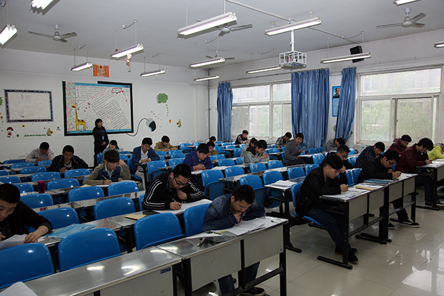 学生在紧张的笔试
