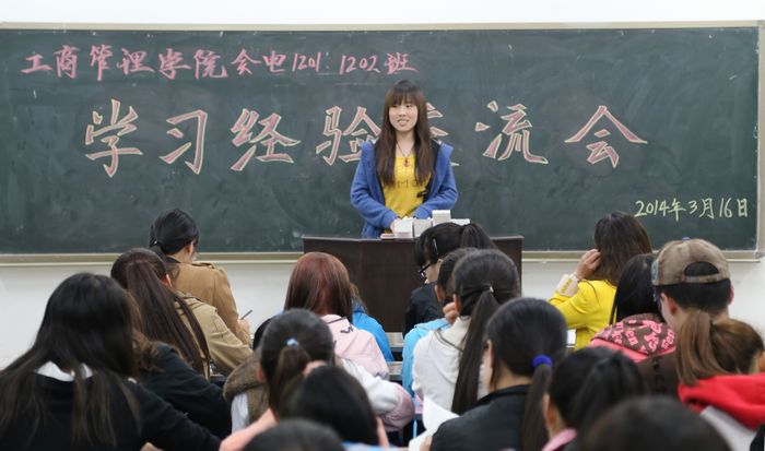 3月16日晚,工商管理学院在校的36个班级同时在各班晚自习教室举行了一场别开生面的“学习经验交流”会,单科成绩优秀的学生代表纷纷走上讲台,与本班同学交流学习经验与心得,共享学习的快乐与喜悦。交流会由各班班主任主持。