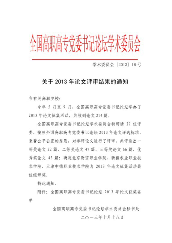 我院四篇论文获全国高职高专党委书记论坛表彰