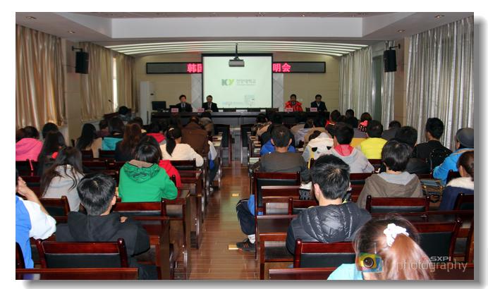 会后,金亨熙教授一行还在第五会议室为我院80余名学生做了韩国建阳大学留学的专场说明会。