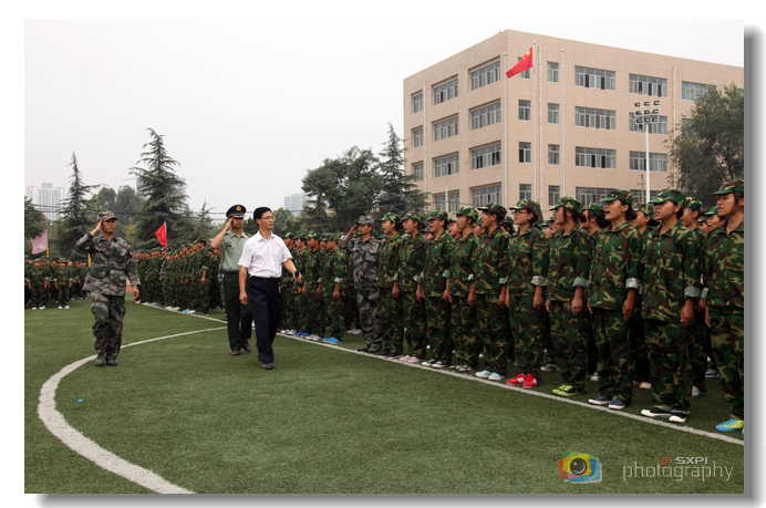 9月18日早,我院2013级新生军训汇报表演暨表彰大会在田径运动场举行,近6000名参训新生意气风发、斗气昂扬,用齐整的军容、矫健的步伐、响亮的口号为持续10天的军训工作画上精彩的句号。党委副书记王天哲、承训部队领导和各二级学院党总支书记出席会议。会议由学工部副部长、团委书记闫军主持。