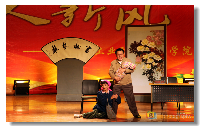 演出舞台上,主持人与我院学生趣味互动,赢得全场阵阵掌声,吼一声秦腔《陕西人》演出开场,以秦韵秦风的陕西话歌曲感染,民间百态的老百姓同台同唱同演,体现淳朴的陕西民风民情,热闹的开场在舞台声光电的配合下美不胜收。接下来,小品《少管所》通过管教与失足青年的对话故事,反映了青少年教育是全社会关注的问题,诙谐幽默,引人深思。《办公室的故事》通过一个信访干部和农村妇女蛮不讲理来闹事的一段趣事,反映一个全心全意为人民服务的好干部。《可爱的局长》通过上门采访某局长的记者和一位时常冒傻气的局长妻子之间的对话,笑料迭出。整台演出的五个小品,从不同侧面展现了新时期的美好生活,同时,还穿插着舞蹈《民族风》、歌曲《公仆心》,魔术表演等,精彩的演出使得现场笑声、掌声融合在一起,成了欢乐的海洋。以著名书画家王西京、刘文西、罗国士、吴三大等名家字画做的舞台装饰,体现了三秦文化和戏剧的结合,更反映了三秦文化的深厚底蕴。最后,演出在舞蹈《和谐家园》欢快的旋律中落下帷幕。晚会形式新颖、清新大气,演员们精彩的表演深深地吸引了观众,幽默的陕西方言更是让观众倍感亲切,陕西方言的台词,有着浓郁的三秦味道的“秦人新风”精彩的演出给我院师生留下了深刻的印象