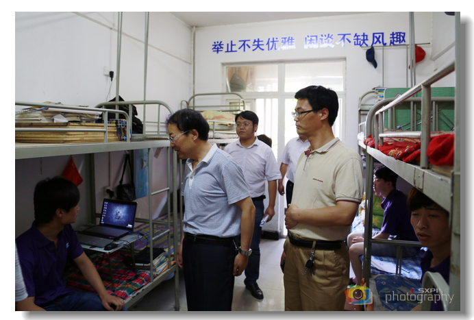 6月3日下午,党委副书记王天哲,学生处处长王超联、副处长张科海,材料学院党总支书记罗怀晓等来到学生宿舍检查指导。在参观完整洁干净的学生宿舍环境后,王天哲副书记充分肯定了材料学院在学生宿舍“舍风”建设中的有益尝试,并希望材料学院要注重保持“舍风”建设成果,并将活动进一步引向深入,进行推广,构建一个清静、舒适的生活、学习环境。