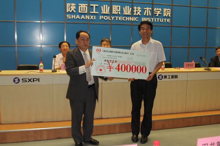 院长崔岩代表学院接受欧姆龙集团捐赠的40万元奖学金