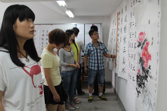 大学生书画社副社长帅凯强同学说:“书画社给我们爱好书画艺术的同学提供了一个学习交流的平台,我们每天都会来这里切磋练笔,沉浸在书画的世界里,我们磨练了性格、陶冶了情操,还增加了自信。”虽然在土木工程学院就读,但他的梦想是毕业前举办一次个人书画展,他说他会朝这个目标不懈努力。