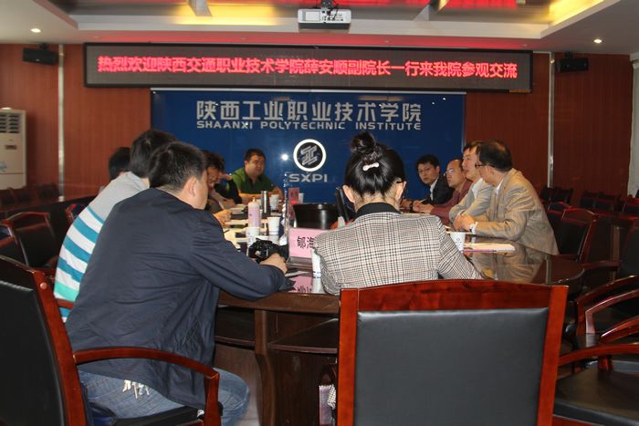 5月8日,陕西交通职业技术学院副院长薛安顺一行10人来我院交流工作。我院副院长王津、教务处处长杨卫军、科研处处长黎炜、党政办副主任田昊、教务处现代教育技术中心主任苏兴龙热情接待了来宾,双方在崇文楼9楼会议室进行了座谈。座谈会由杨卫军主持。