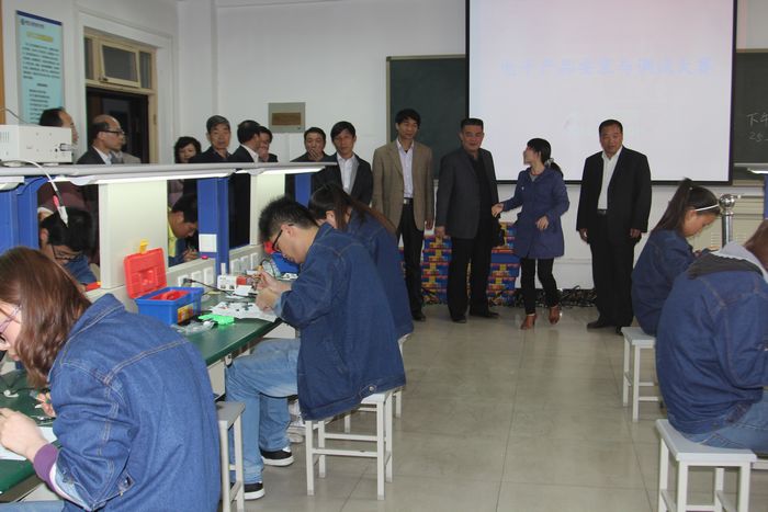 参会领导观摩“电子产品安装与调试”技能比赛现场
