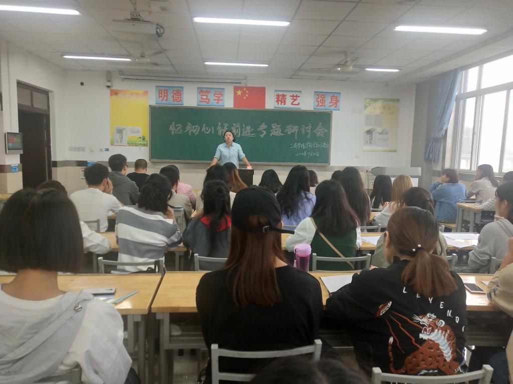 本次研讨会以“五个什么”为主要内容进行学习讨论,教育引导广大党员不忘初心、继续前进,在工作、学习中发挥先锋模范作用。为了让党员们坚定理想信念,牢记党员身份和使命,学工支部书记杜娟老师从“入党誓词”和“工作寄语”两个方面,提醒参会党员不忘初心,砥砺前行,在各自的工作学习岗位上“撸起袖子加油干”,争做一名“忠诚、干净、勤奋、担当”合格的共产党员。