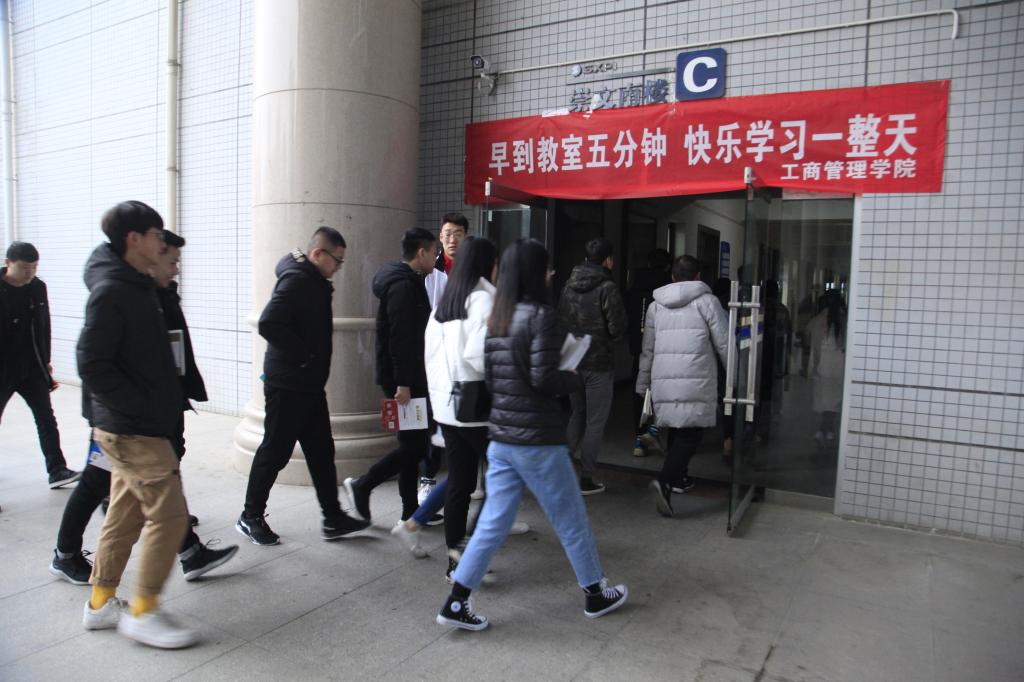 学期伊始,为帮助学生养成良好学习习惯,营造良好学习氛围,促进优良校风形成,工商管理学院面向全体学生开展“早到教室五分钟,快乐学习一整天”活动。