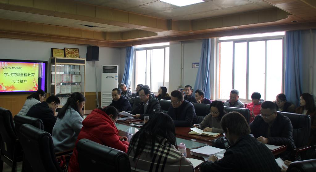 2月24日下午,工商管理学院党总支组织全体教职工在格物楼408会议室召开专题会议,传达学习全省教育大会精神。会议由党总支书记孙继龙主持。
