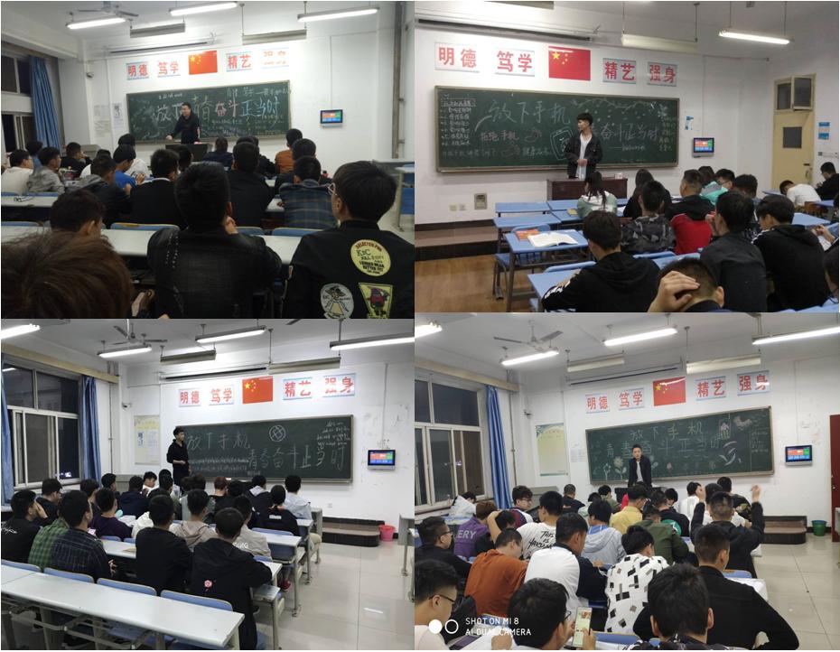为进一步加强我院学风建设,营造积极浓厚的学习氛围,4月21日晚,电气工程学院组织17、18级全体学生利用晚自习时间开展“放下手机,青春奋斗正当时”主题班会。