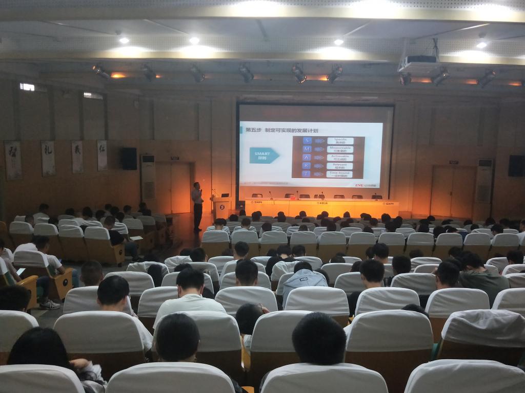 刘德成经理运用其在职业规划、招聘技巧、组织设计等方面积攒的知识储备及丰富经验,理性分析了当今大学生面临的严峻就业形势,使学生清晰认识到做好个人职业生涯规划的必要性和重要性。通过概念解析、案例分享、现场互动等多种形势剖析了职业规划的周期阶段与内在规律,重点讲解了自我职业规划的六大步骤及各阶段的具体实施方法。最后,刘德成经理勉励全体学生要增强所学专业认知,权衡自身利弊,结合社会环境、行业环境、家庭 环境等各方面因素做好个人职业规划,为今后求职做好充分的准备工作。