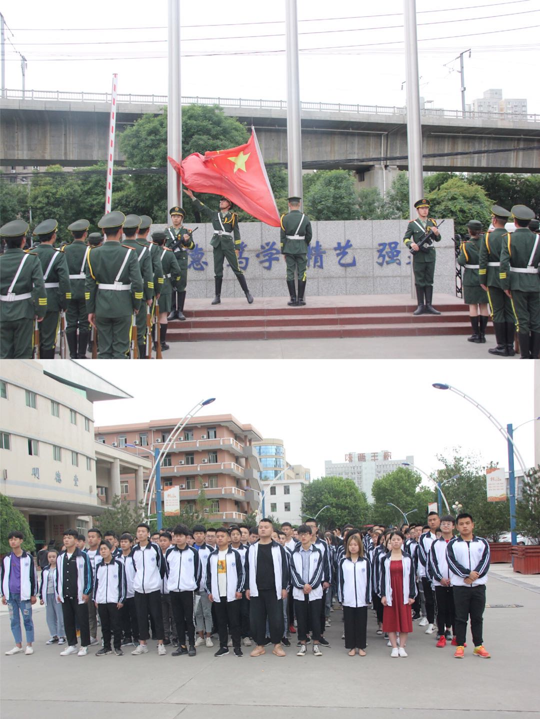 7点整,升旗仪式正式开始。国旗护卫队的队员们迈着坚定有力的步伐,护送鲜艳的五星红旗走向升旗台,伴随着雄壮的国歌声,五星红旗冉冉升起,全体师生昂首肃立,行注目礼。