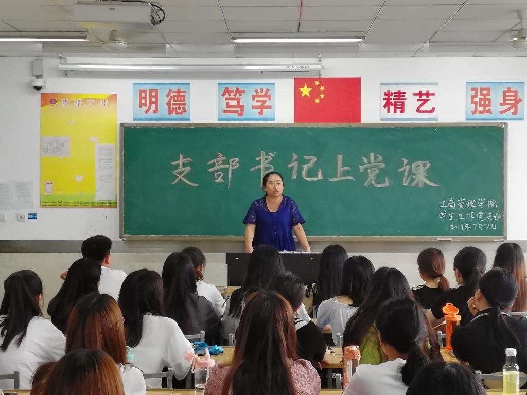根据工商管理学院学生工作党支部2019年“三会一课”计划的要求,7月2日下午,学生工作党支部书记杜娟在崇明楼806教室开展专题党课讲座活动,工商管理学院2017级58名学生党员共同参加了党课学习。