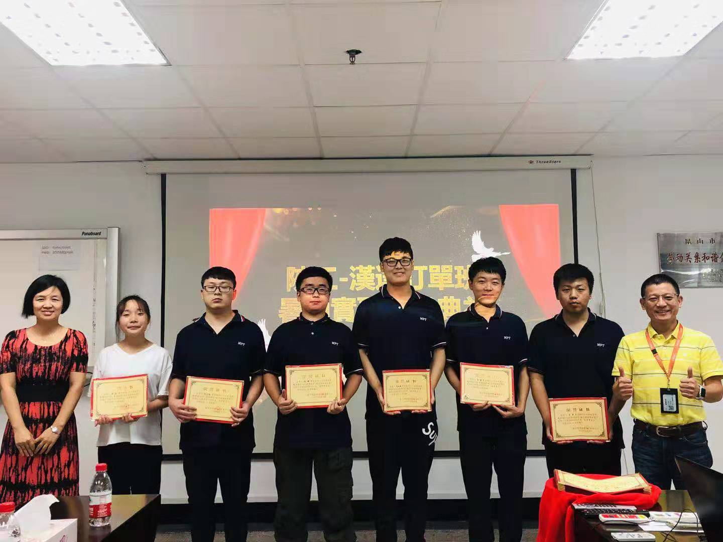 在结业典礼上,公司模具一部工程师谭军战、模具二部副理何立华分别对订单班学生四周的实习情况进行了总结,优秀学生代表赵桦、赵阳阳汇报了暑期实习的收获与感想。与会领导为同学们颁发了优秀员工证书。材料学院院长李云希望同学们脚踏实地、再接再厉,在工作中提升职业素养,还要学会规划未来,用实干和奉献追求个人的长远发展。公司人力资源总监郑智仁还向李云一行介绍了企业的发展现状、薪资待遇和后续人力需求情况。