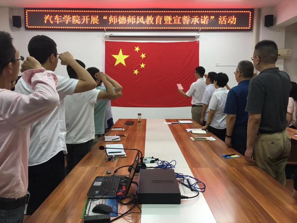 为进一步加强我院师德师风建设,汽车工程学院于9月4日举办了以“立师德 铸师魂 做新时代合格的高校教师”为主题的师德师风教育暨宣誓活动,开启了2019-2020学年 “师德教育第一课”。