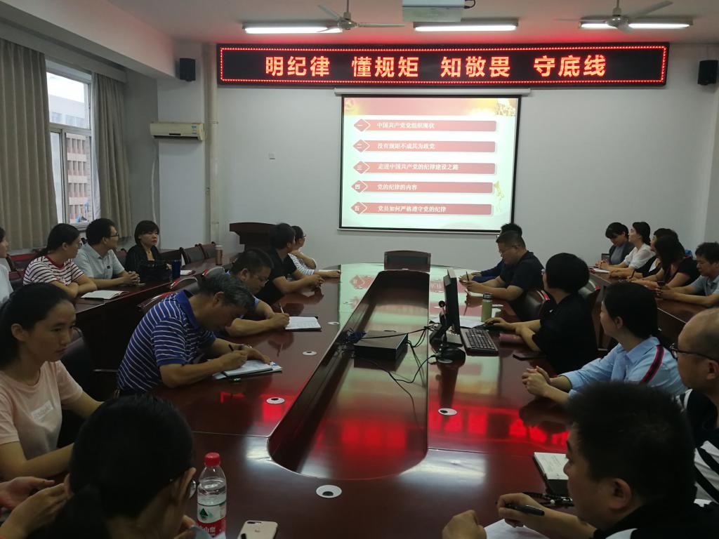 为了在党员中不断深化纪律教育,增强党员纪律观念和纪律意识。按照学院纪委《关于开展第二个纪律教育学习宣传月活动的通知》精神,9月11日下午,商贸与流通学院党总支在崇文五楼会议室开展“明纪律、懂规矩、知敬畏、守底线”主题党日活动。活动由党总支书记陈昊平同志主持。
