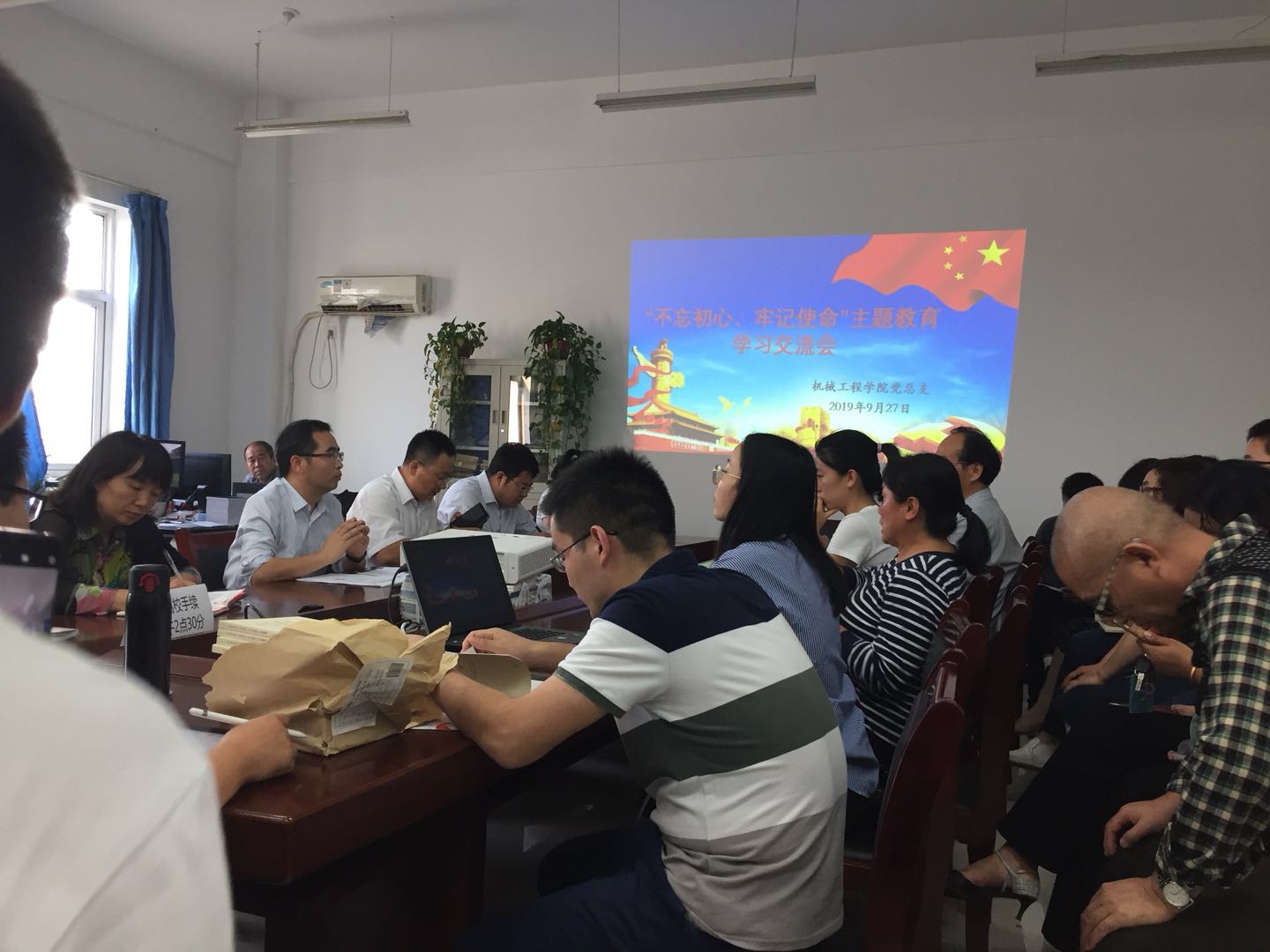在中华人民共和国成立70周年来临之际,依据学院 “不忘初心、牢记使命”主题教育学习教育工作安排,9月27日机械工程学院党总支开展“不忘初心、牢记使命”主题教育学习交流会,会议由党总支书记苏宏志主持。