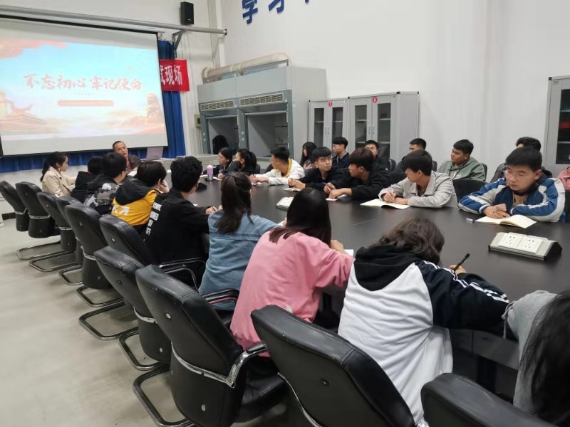 为深入贯彻学院《“不忘初心、牢记使命”主题教育实施方案》精神,进一步提升党员理论素养,10月10日下午,化纺服学院学生工作党支部在化工实训中心召开“不忘初心、牢记使命”主题教育推进会,化纺服学院学生工作党支部全体成员参加会议。