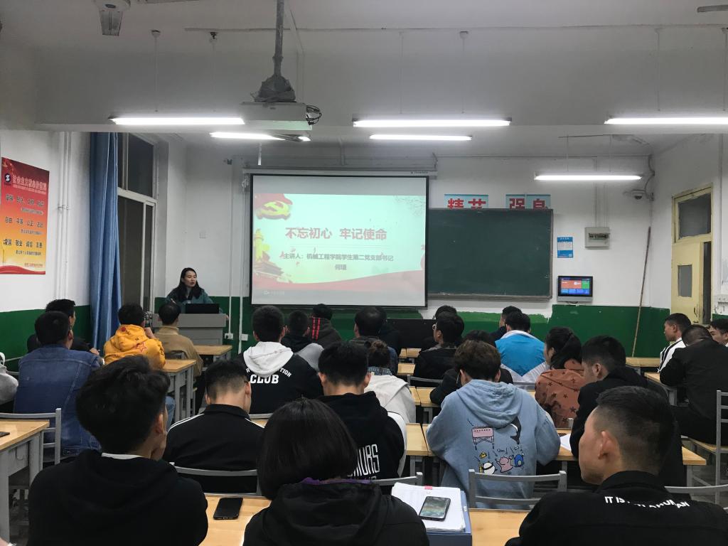 11月4日晚上,机械工程学院学生支部在崇文北楼107开展支部书记讲党课活动,第二支部书记何瑾以“不忘初心、牢记使命”为主题为全体预备党员和入党积极分子代表上了一堂精彩的党课。