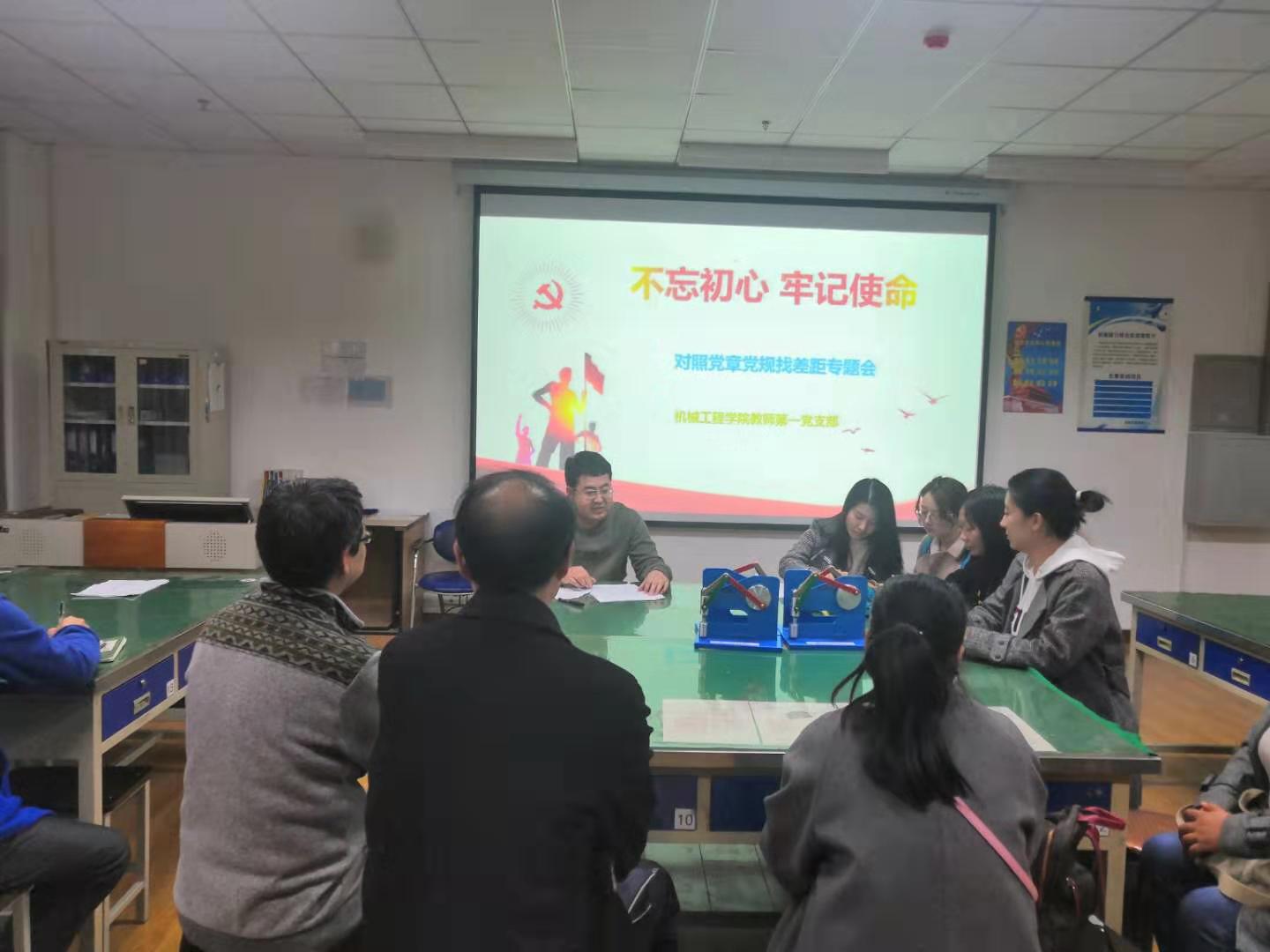 会上,机械学院各支部全体党员同志对照《党章》《准则》《条例》和《中国共产党工作机关条例》分别从相关的21个方面认真检查,查找差距,列出问题清单,制定整改方案,并将整改方案和具体整改措施作为后续“不忘初心、牢记使命”主题教育的重点内容,使“对照党章党规找差距”在各自工作岗位落地,取得成效。
