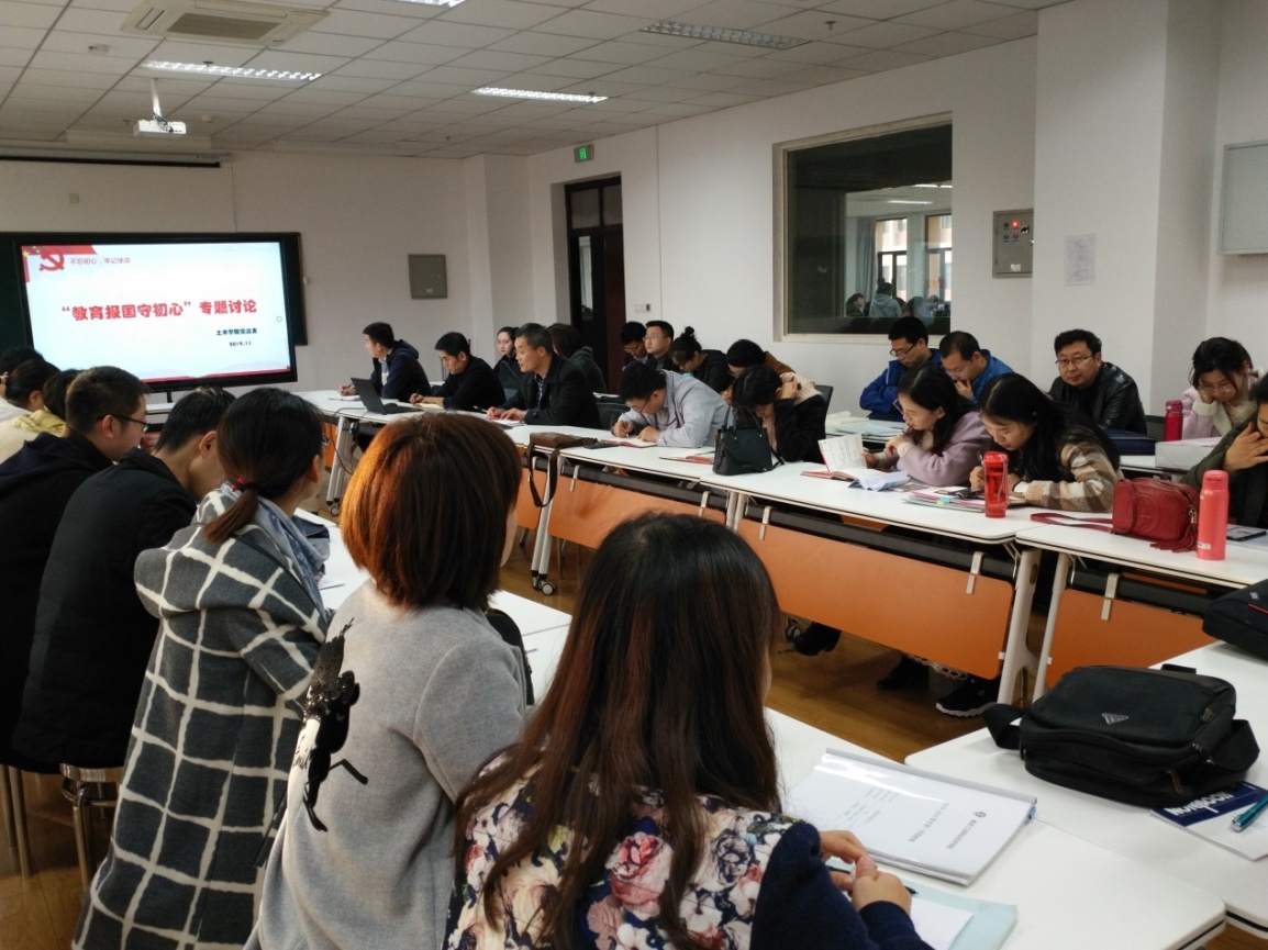 随后组织了以“教育报国守初心”为主题的研讨,针对目前学生特点,共同探讨了如何提高教师教学水平、课堂管理能力、学生学习主动性与积极性的方式方法,现场讨论热烈。