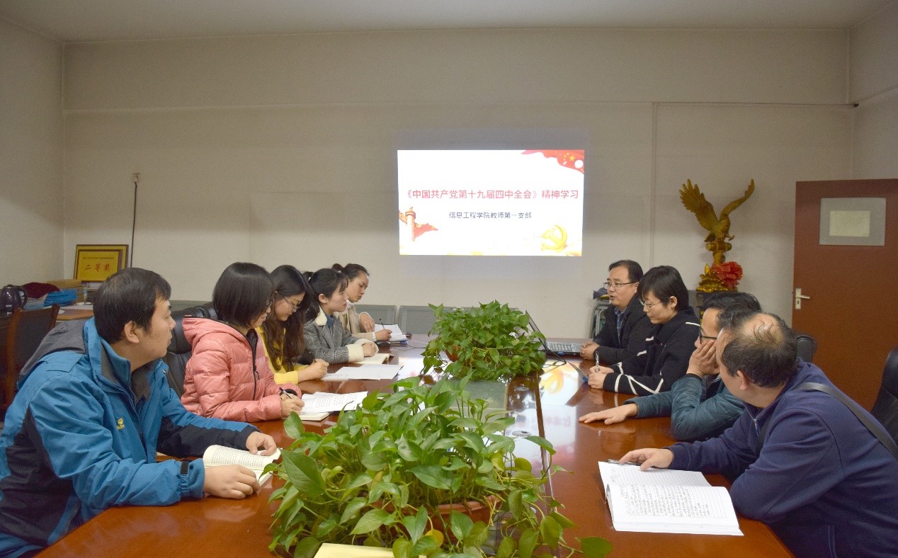 11月20日下午,信息工程学院教师第一党支部在崇文楼A806开展认真学习贯彻党的十九届四中全会精神暨支部书记讲党课活动,信息工程学院教师第一党支部全体党员参加了本次活动。