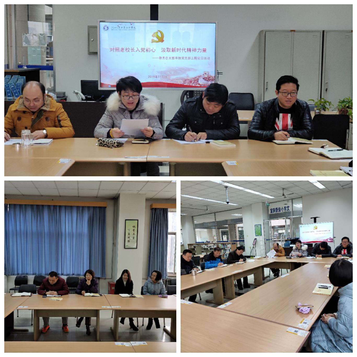 11月28日上午,图书馆党支部在图书馆四楼南书库开展“对照老校长入党初心,汲取新时代精神力量”主题党日活动。活动由支部书记王丁同志主持,图书馆支部全体党员参加了本次主题党日活动。