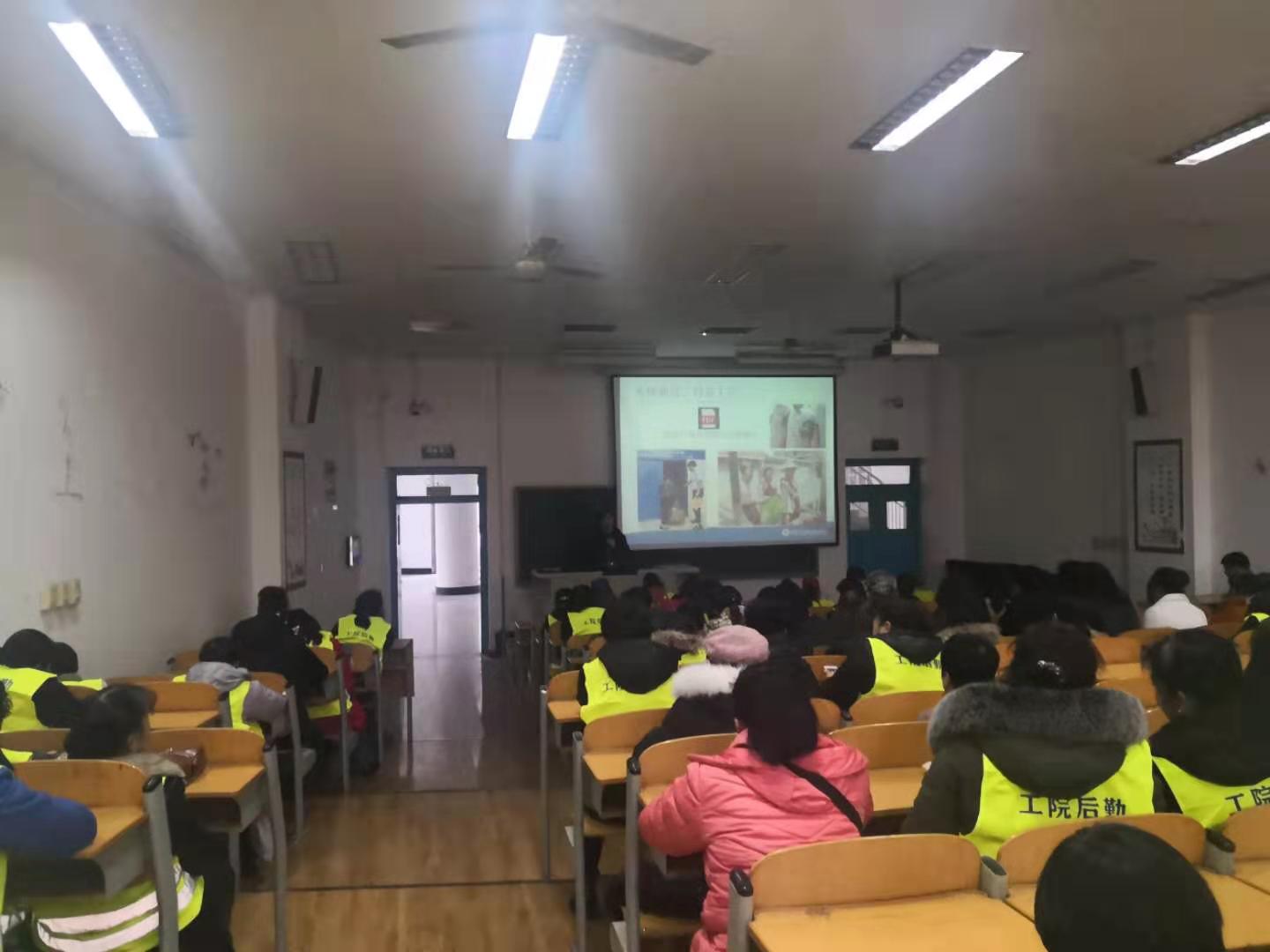 1月7日下午,我院在崇文西楼102教室为130余名物业管理人员举办垃圾分类知识第二期培训会。培训会由后勤处物业管理科科长张联朋主讲,物业管理科全体人员与保洁人员、绿化人员等一同参加了培训会。