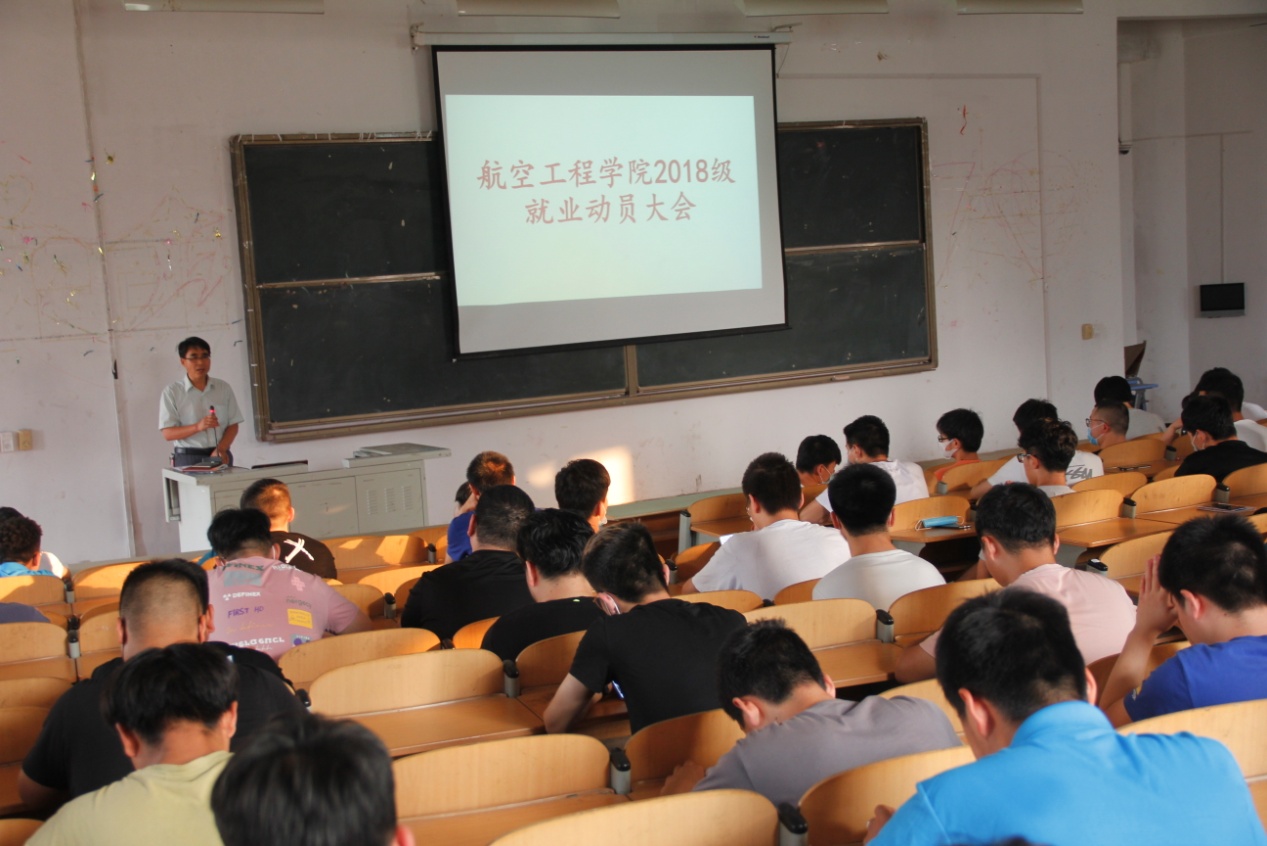为进一步稳固推动2018级学生的就业工作,6月12日,航空工程学院在崇文西楼301教室组织召开了2018级学生就业动员大会,航空学院党总支书记刘军旭、学工办主任张旭、辅导员白帅丽和大二年级所有未加入订单班的学生参加了会议。