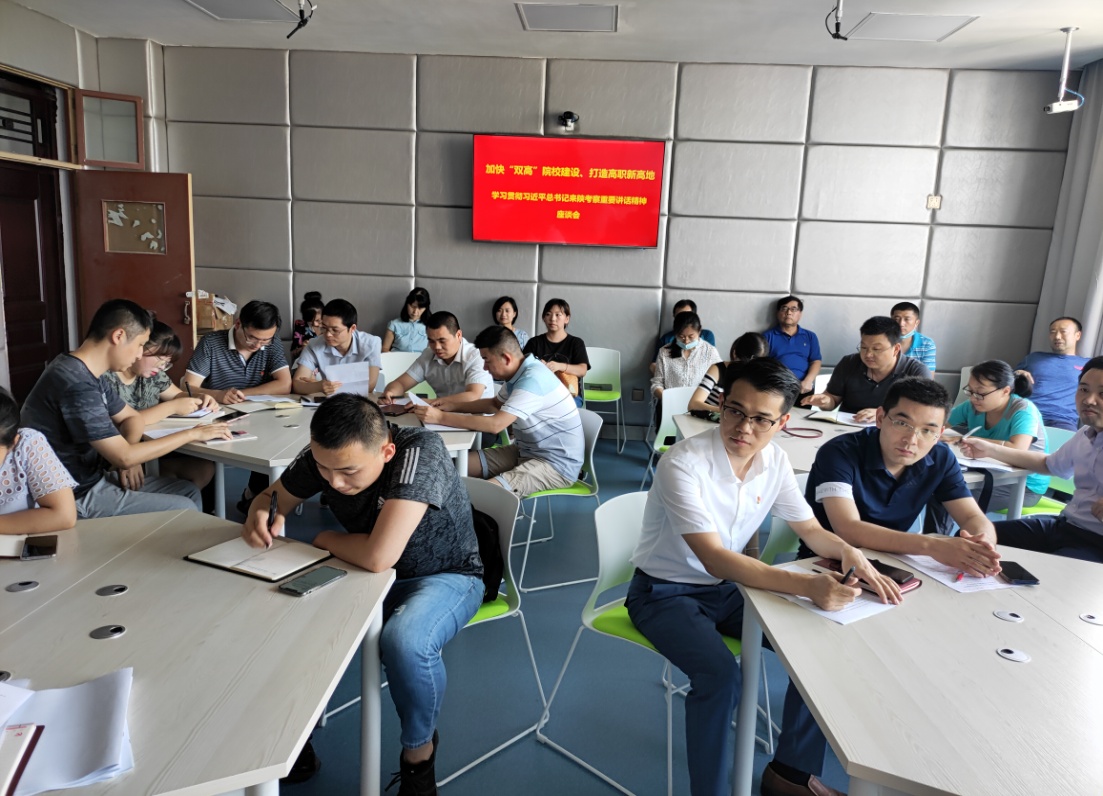 教师代表一致表示在学院“双高”建设与新校区建设的新时期,要充分展发扬“延安精神”与“西迁精神”,不忘教书育人的初心,牢记立德树人的使命,胸怀大局,无私奉献,求真务实,爱岗敬业,全力推进学院的全面发展,以实际行动落实习近平总书记来陕考察重要讲话精神。