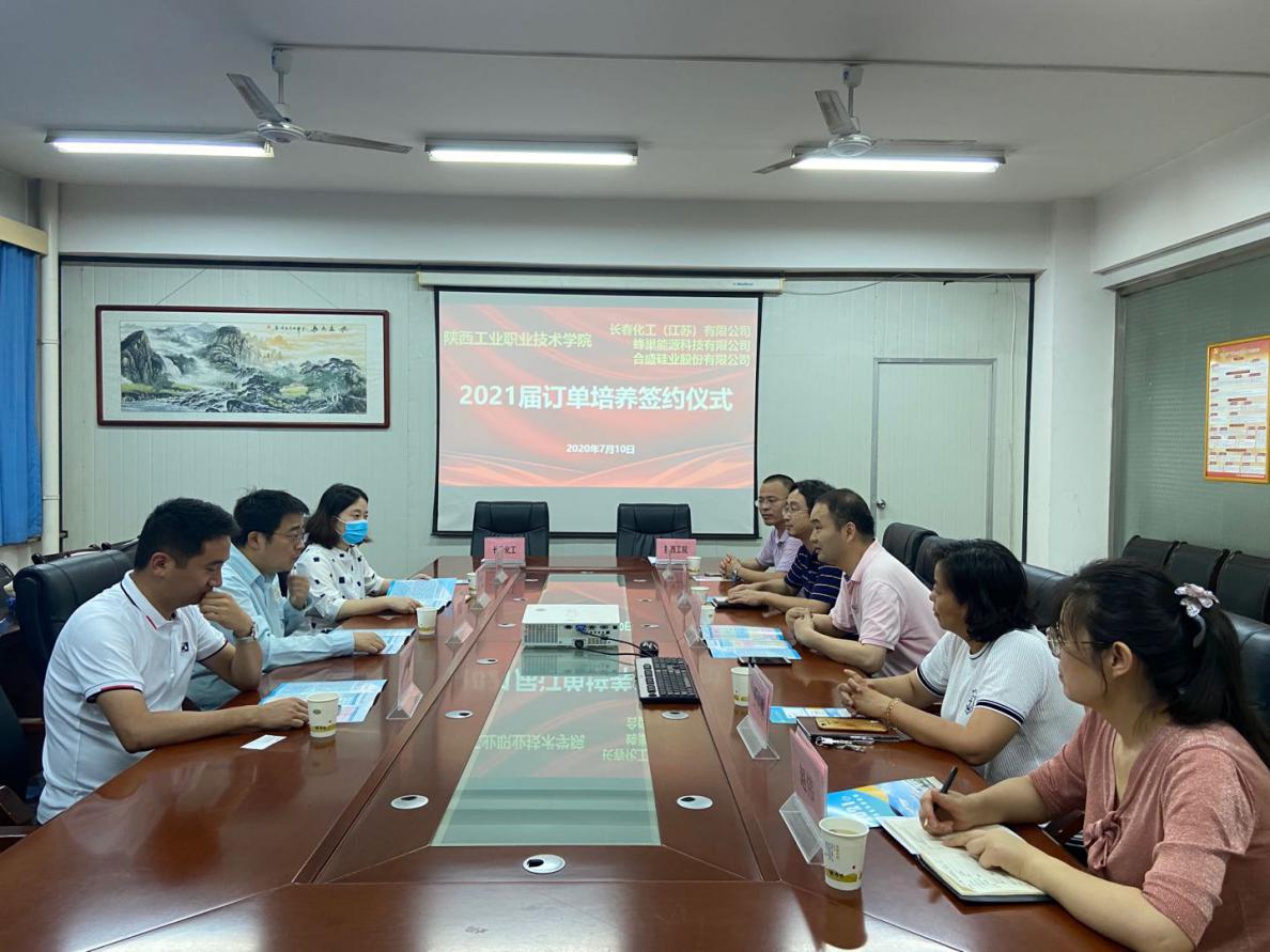 7月10日下午,化工与纺织服装学院与长春化工有限公司、合盛硅业股份有限公司、蜂巢能源科技有限公司订单培养签约仪式在崇文楼811举行,长春化工有限公司人力资源经理邵健、合盛硅业股份有限公司人力资源经理严培玉、蜂巢能源科技有限公司人力资源经理张奎、我校就业处处长卢文澈、化纺服学院院长贾格维、化纺服学院党总支书记王化冰以及我院学工办主任王飞龙、教学办主任赵伟参加了此次会议,会议由王化冰书记主持。